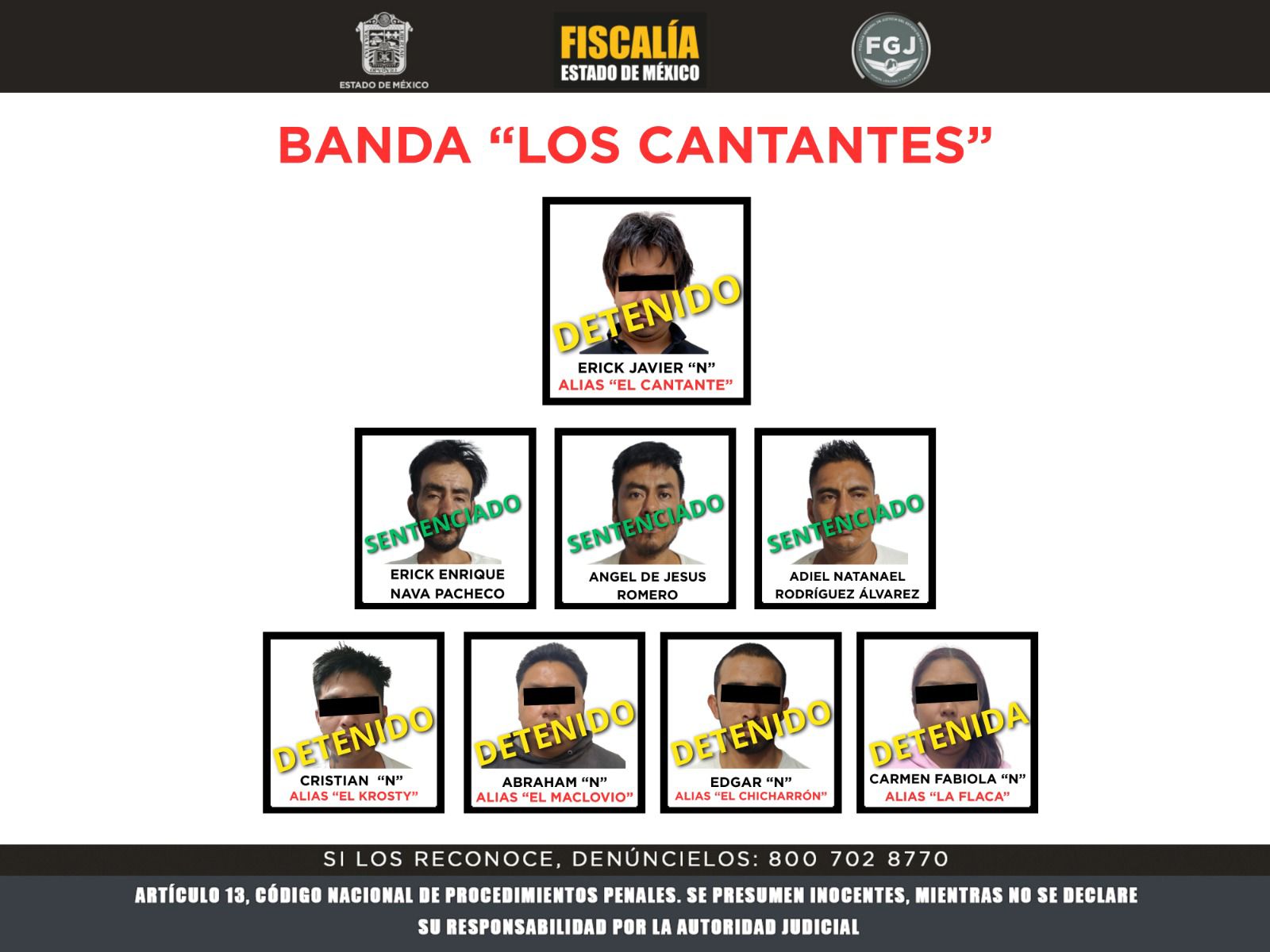 Edgar “N” es integrante de un grupo criminal autodenominado “Los Cantantes”, cuyos miembros son investigados por diversos robos de vehículo con violencia o estacionados, y cuya estructura opera principalmente en varios municipios del Valle de Toluca, como Metepec, Almoloya de Juárez, Zinacantepec y la propia capital mexiquense.