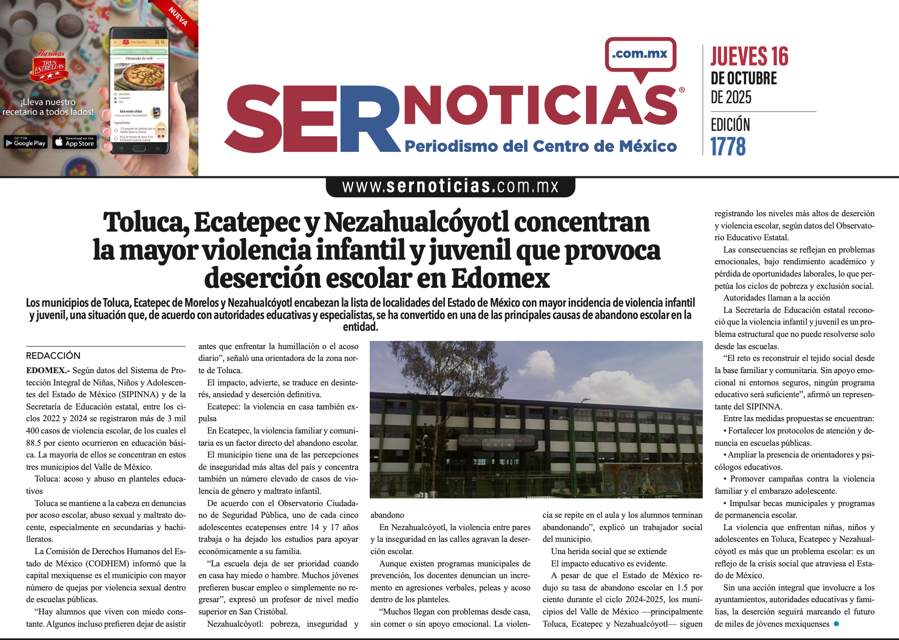 🚨⚡️ #Portada_EDOMEX Toluca, Ecatepec y Nezahualcóyotl concentran la mayor violencia infantil y juvenil que provoca deserción escolar en Edomex #Toluca 🚨⚡️