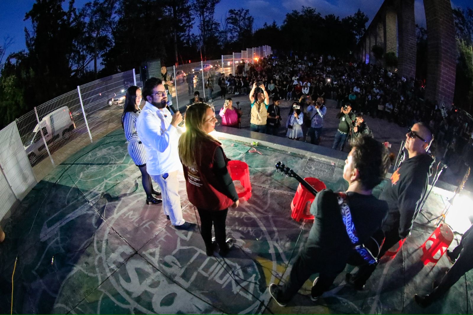 Ante un teatro al aire libre abarrotado, vecinas y vecinos de distintas colonias corearon canciones como Luna, Ay, Ay Amor, y Ciudad sin Guerra en un ambiente de alegría, identidad y comunidad al pie del histórico acueducto de Los Remedios.