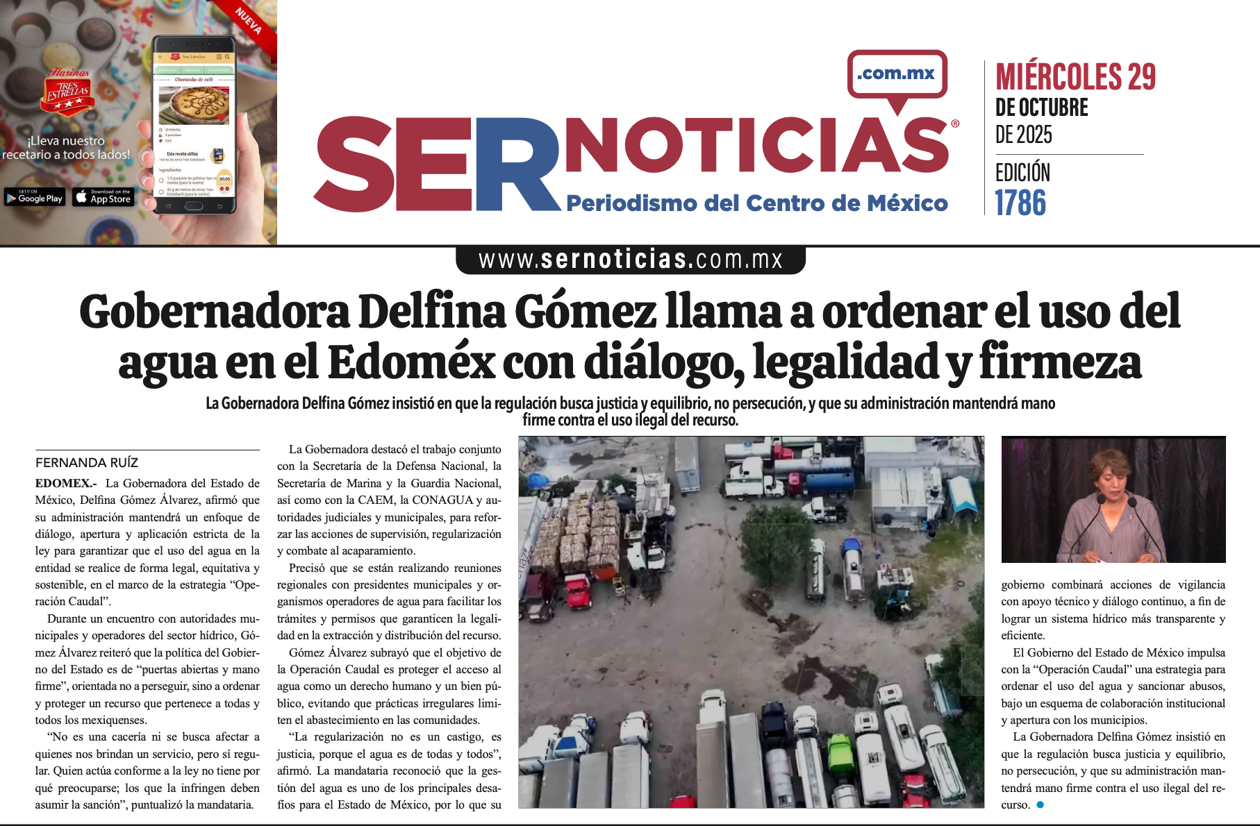 🚨⚡️ #Portada_EDOMEX Gobernadora Delfina Gómez llama a ordenar el uso del agua en el Edoméx con diálogo, legalidad y firmeza #Toluca 🚨⚡️