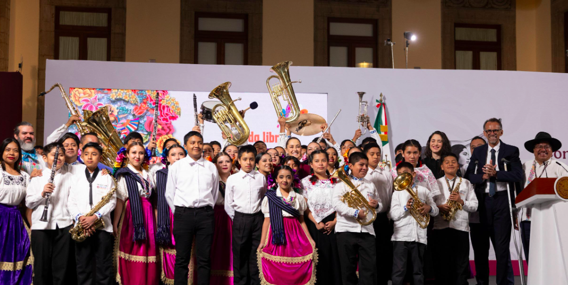 Asimismo, el director general del Instituto Nacional de Pueblos Indígenas, Adelfo Regino Montes, detalló que se trata de un trabajo colaborativo con la Secretaría de Cultura para que también se ofrezca preparación musical en las mil 400 Casas de la Niñez Indígena, en las que se proporciona alimentación y hospedaje a alrededor de 84 mil niñas y niños de los pueblos originarios.