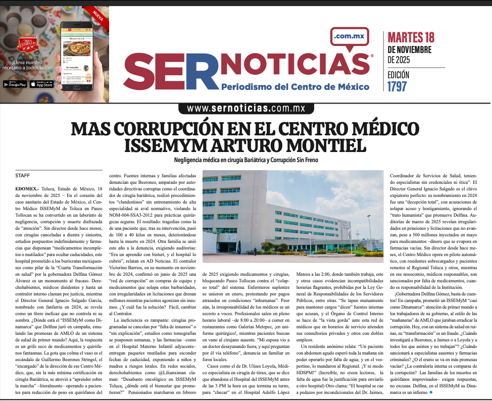 🚨⚡️ #Portada_EDOMEX MAS CORRUPCIÓN EN EL CENTRO MÉDICO ISSEMYM ARTURO MONTIEL #Toluca 🚨⚡️