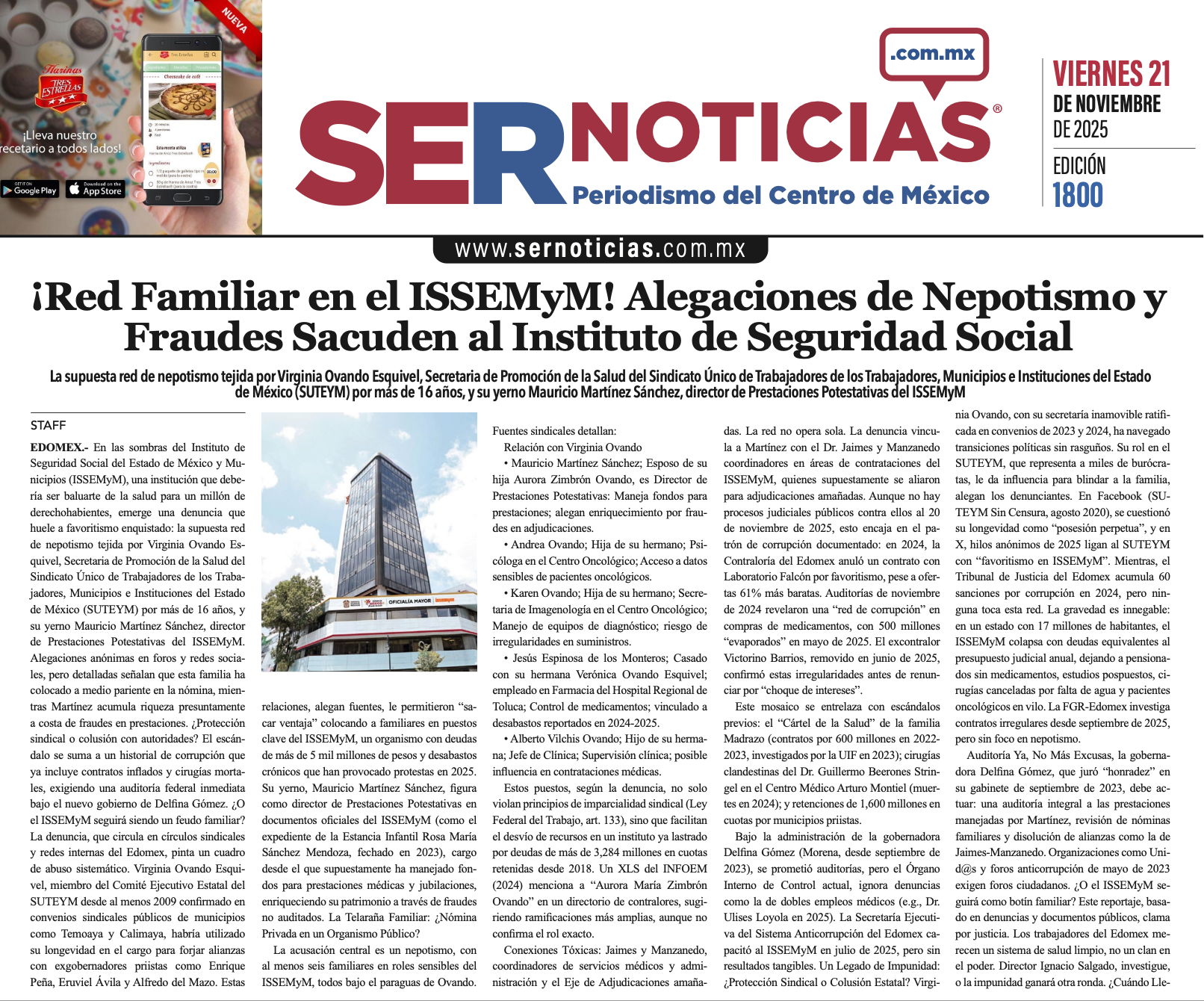 🚨⚡️ #Portada_EDOMEX iRed Familiar en el ISSEMyM! Alegaciones de Nepotismo y Fraudes Sacuden al Instituto de Seguridad Social #Toluca 🚨⚡️