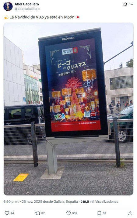 «La Navidad de Vigo ya está en Japón», escribió Caballero en su tuit, que va camino ya de las 220.000 visualizaciones y los 650 «me gusta».