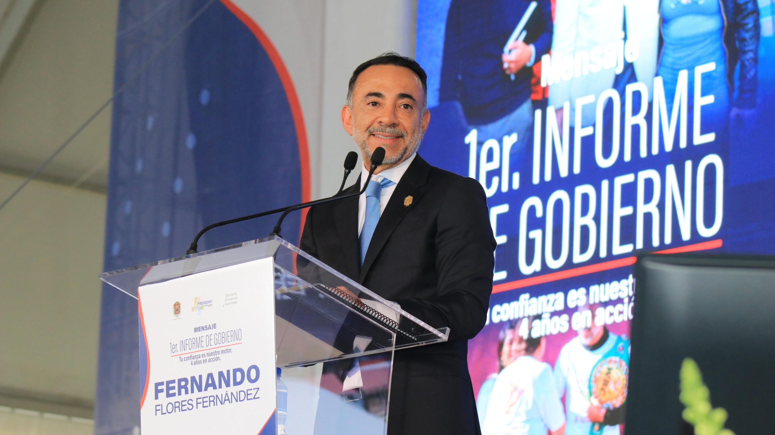 Metepec, Méx.— Ante más de 12 mil asistentes reunidos en el recinto ferial, el alcalde Fernando Flores Fernández presentó su primer Informe de Gobierno correspondiente a su segunda administración, donde destacó que la ciudadanía es “la razón de cada decisión” y el eje central del proyecto municipal.
