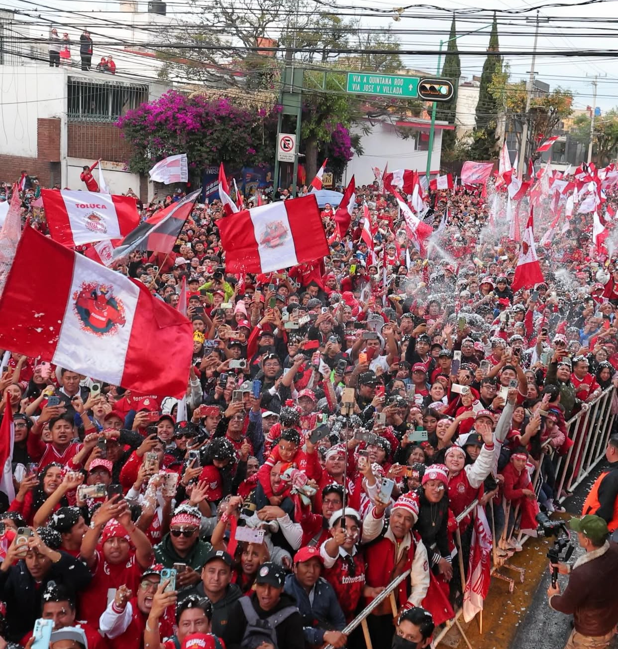 Toluca, Estado de México.— La capital mexiquense vivió una jornada histórica al celebrar, junto con su gente, el campeonato número 12 del Deportivo Toluca. Tras la hazaña conseguida en el Estadio Nemesio Díez, la fiesta escarlata se trasladó a las calles un día después del partido, cuando el equipo realizó el recorrido del triunfo en reconocimiento al respaldo incondicional de su afición.