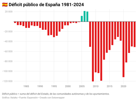 España arrastra déficit desde hace casi veinte años y su balanza de pagos, aunque en superávit desde 2012, no compensa.