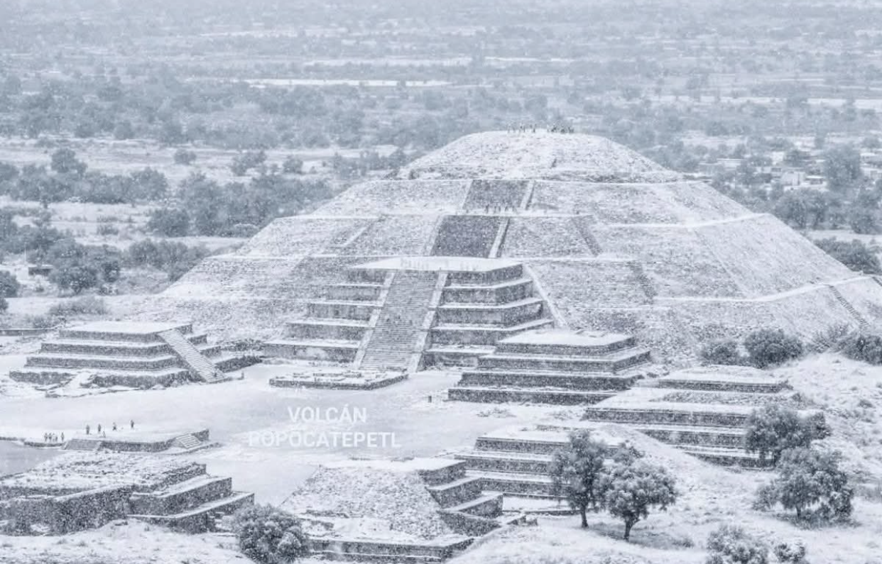 En perspectiva histórica, no existen registros de nevadas propiamente dichas en Teotihuacán, a diferencia de otros puntos del centro del país. En el Valle de México, las nevadas son excepcionales; la última de gran magnitud en la Ciudad de México ocurrió en 1967. En contraste, en épocas prehispánicas, los habitantes de la región transportaban nieve y hielo desde volcanes cercanos, como el Iztaccíhuatl o el Nevado de Toluca, para elaborar preparaciones dulces conocidas como “nieves”, tradición que aún se conserva en algunas ferias locales.