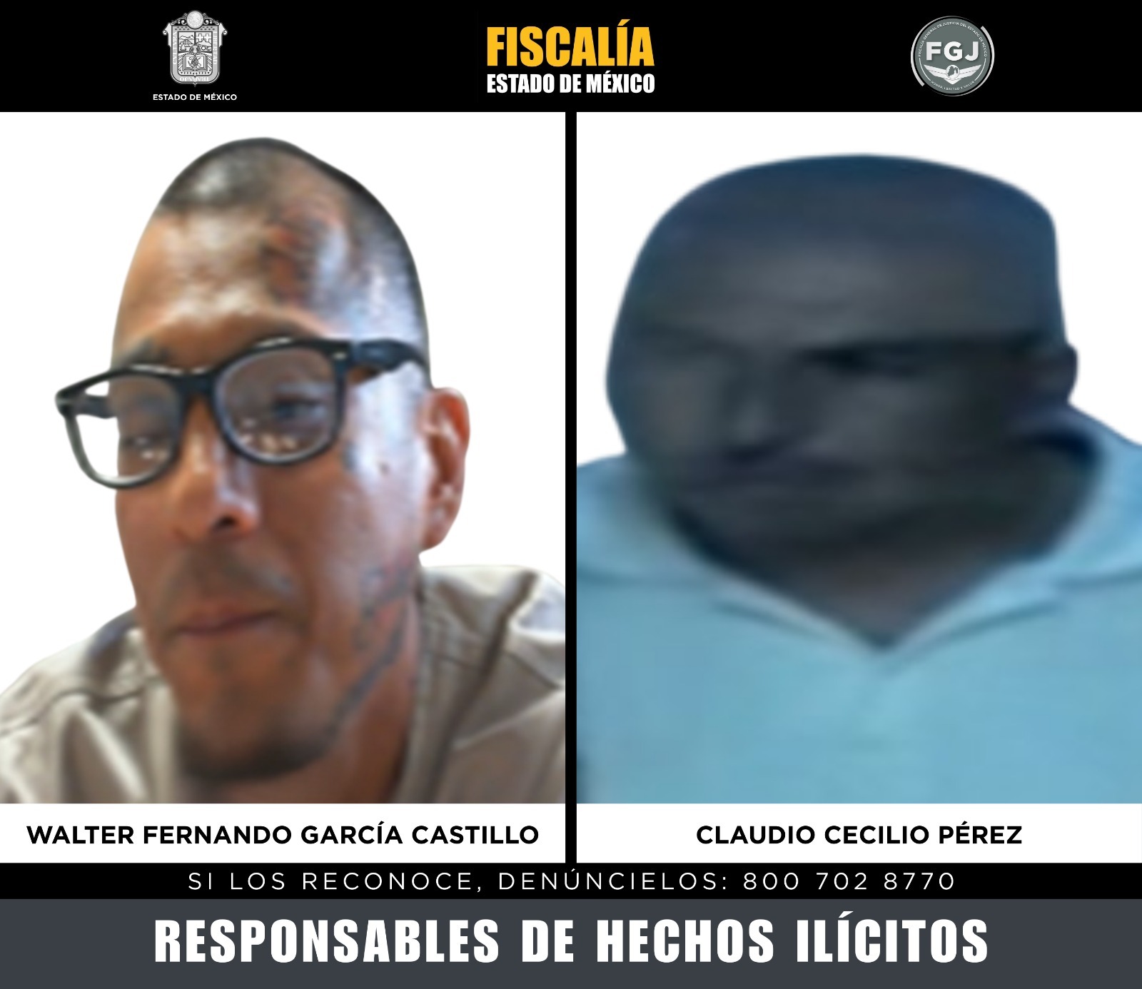 Chimalhuacán, Estado de México, 29 de enero de 2026.— Un juez del Poder Judicial del Estado de México sentenció a 40 años de prisión a Walter Fernando García Castillo y Claudio Cecilio Pérez, tras ser encontrados penalmente responsables del delito de extorsión, informó la Fiscalía General de Justicia del Estado de México (FGJEM).