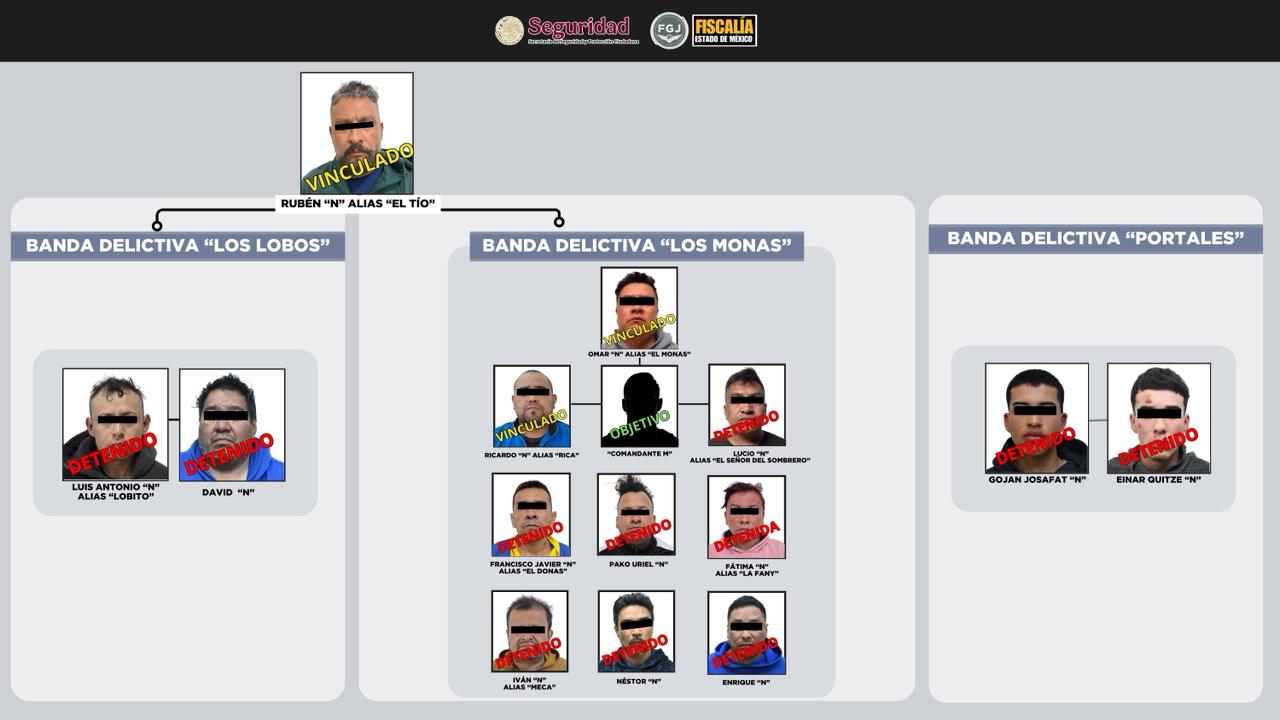 De acuerdo con la FGJEM, las indagatorias permitieron identificar la operación de diversos grupos delictivos locales dedicados a homicidios, extorsión y delitos contra la salud, principalmente en las zonas Sur y Oriente de Tultitlán.