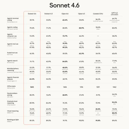 Buscando el ‘mejor’ modelo. Llegados a este punto, la pregunta relevante deja de ser cuánto ha mejorado Sonnet 4.6 en términos absolutos y pasa a centrarse en cómo se sitúa frente a los otros grandes modelos que hoy compiten por el mismo espacio de uso. La comparación no es sencilla ni admite un único ganador, porque cada sistema destaca en áreas distintas y responde a prioridades técnicas diferentes. Por eso conviene leer los benchmarks con una mirada práctica, identificando en qué tareas concretas aparecen las diferencias reales.