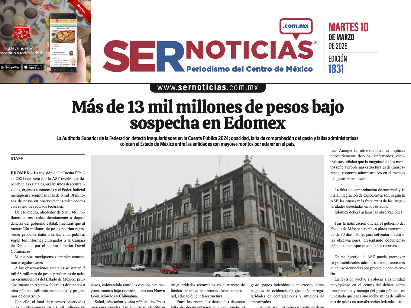 Inicio/Portada Periódico/🚨⚡️ #Portada_EDOMEX Más de 13 mil millones de pesos bajo sospecha en Edomex #Toluca 🚨⚡️ Portada Periódico 🚨⚡️ #Portada_EDOMEX Más de 13 mil millones de pesos bajo sospecha en Edomex #Toluca 🚨⚡️ SerNoticas Send an email 9 marzo 2026 Facebook X WhatsApp Telegram Compartir por correo electrónico Ser Noticias 10 de MarzoDescarga Me gusta esto:Me gusta Cargando... Relacionado SerNoticas Send an email 9 marzo 2026 Facebook X WhatsApp Telegram Compartir por correo electrónico Mostrar más Compartir Facebook X WhatsApp Telegram