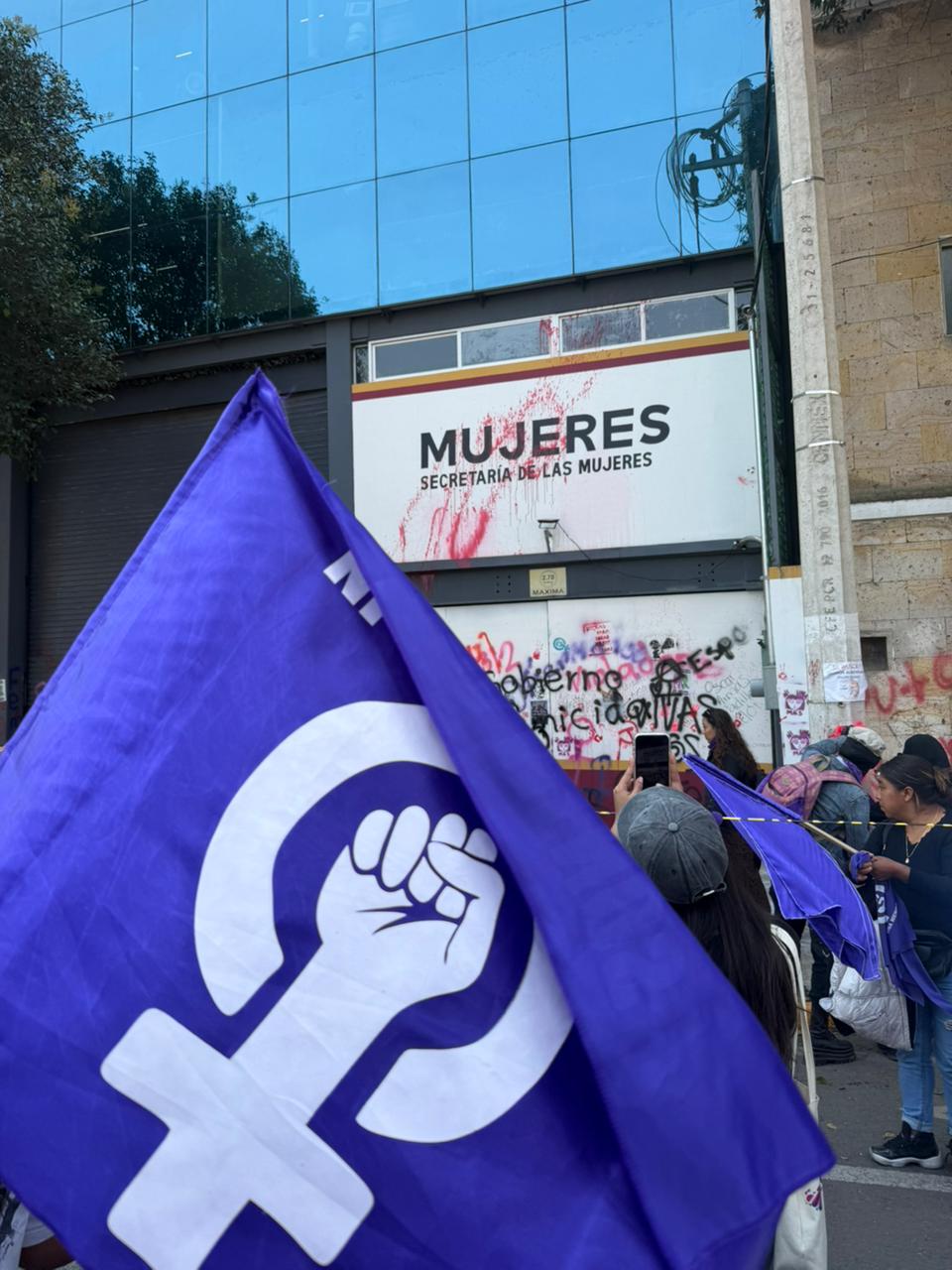Aun con todos los símbolos que acompañan este cuadro, digno de recuerdo, aquí nos preguntamos si fue planeado o naturalmente sugerido in situ para contener la ola de mujeres violetas que gritaban justicia.