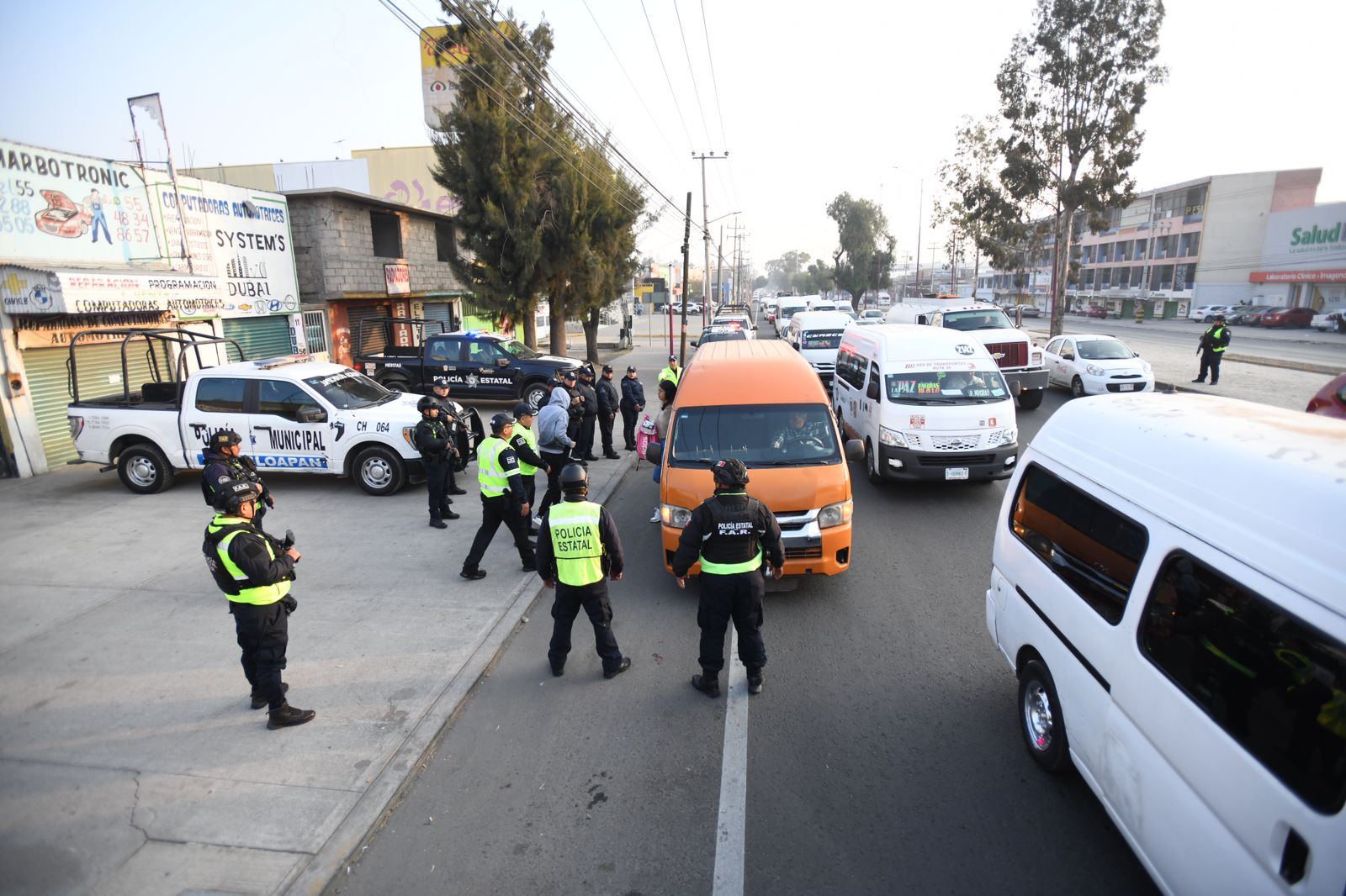 Participan de manera conjunta la Secretaría de Seguridad estatal y corporaciones municipales; realizan inspecciones aleatorias y patrullajes preventivos en vías estratégicas.