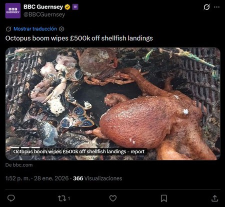 Para entenderlo hay que remontarse a 2025, cuando los pescadores que faenan en las costas del sur de Reino Unido se encontraron con una estampa inesperada: en las nasas que llevan generaciones instalando para cazar cangrejos y langostas empezaron a aparecer conchas vacías… una pista de la presencia de pulpos.